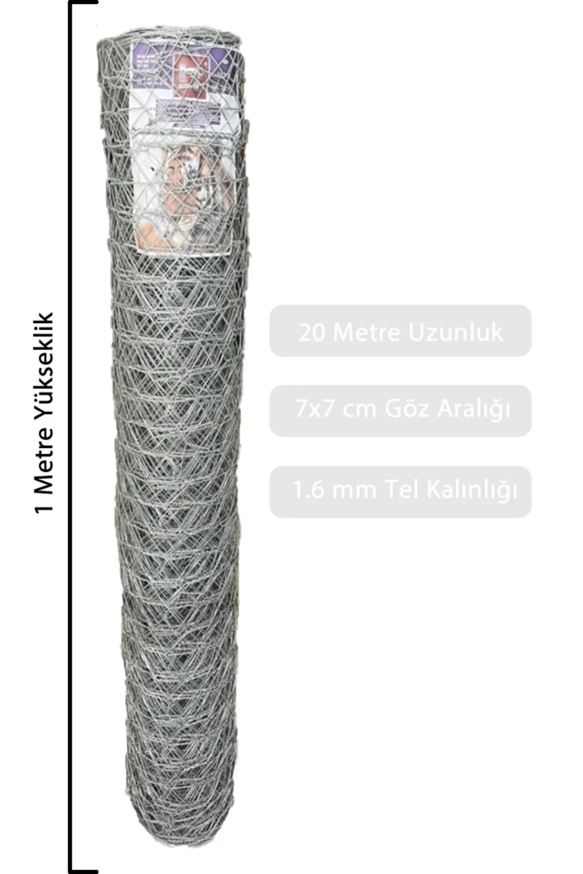 100 cm yüksekliği bulunan bulunan bu telin uzunluğu 20 metredir. 7×7 cm gözenek aralıklarına sahiptir. Galvaniz kaplama olup 1,6 mm kalınlığında üretilmiştir. Uzun yıllar dayanıklı olup paslanma yapmaz. Bahçeler için idealdir.